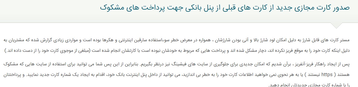 امکان شارژ متعدد مسترکارت و ویزا کرت فراهم شده است و پس از هر بار شارژ برای شما پیام هشدار امنیتی ارسال میشود که مواظب کارت خود باشید!