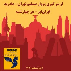 برقراری پرواز مستقیم (ایران‌ایر) تهران _ مادرید پس از ۱۷ سال هر چهارشنبه از دوم سپتامبر ۲۰۲۰
