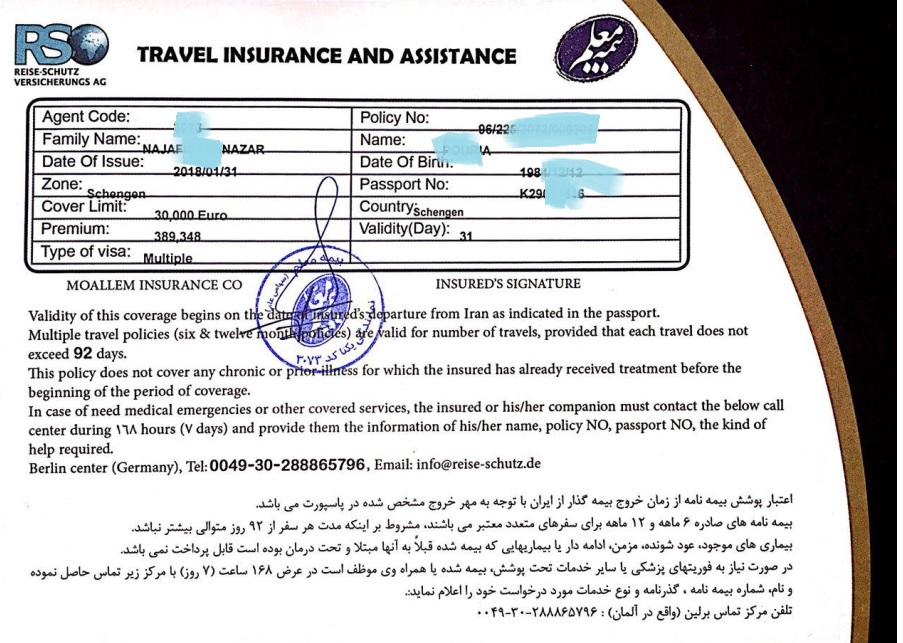 ۵- توجه داشته باشید قبل از تهیه بیمه نامه از کارگزار سوال کنید که آیا بیمه شما برای سفارت مزبور قابل قبول است یا خیر ! مثلا کشورهای آلمان و اتریش بیمه معلم را قبول ندارند…